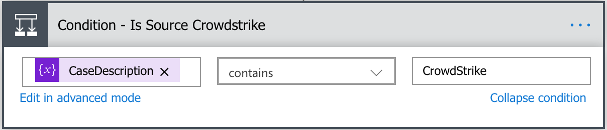 To start the Crowdstrike portion of this flow, I begin by setting the AlertSource variable to ‘CrowdStrike’ and the Continue variable to ‘false’.